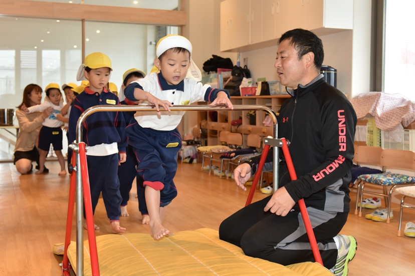 「色々な体操を通じて、自分にとってできることから取り組み、できるようになる。できることは楽しい。 楽しいからさらに次の段階を求める」。 これらの積み重ねによって運動が得意になります。その自信により、最後まであきらめないでチャレンジする心と夢を持ち続けてほしいと願っています。